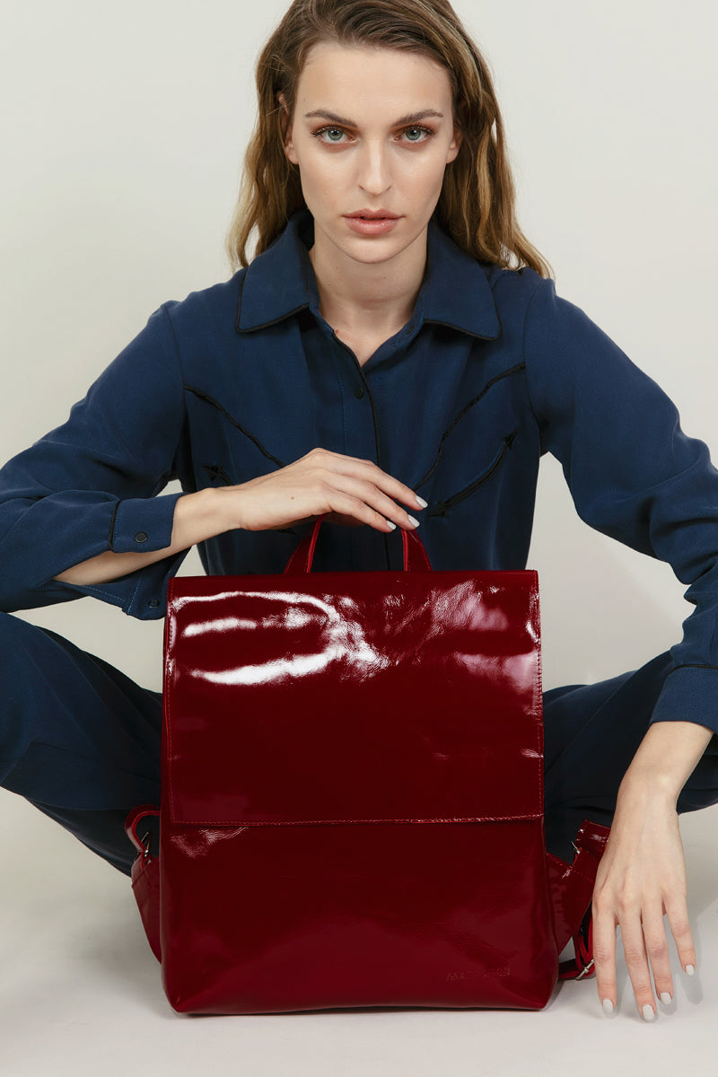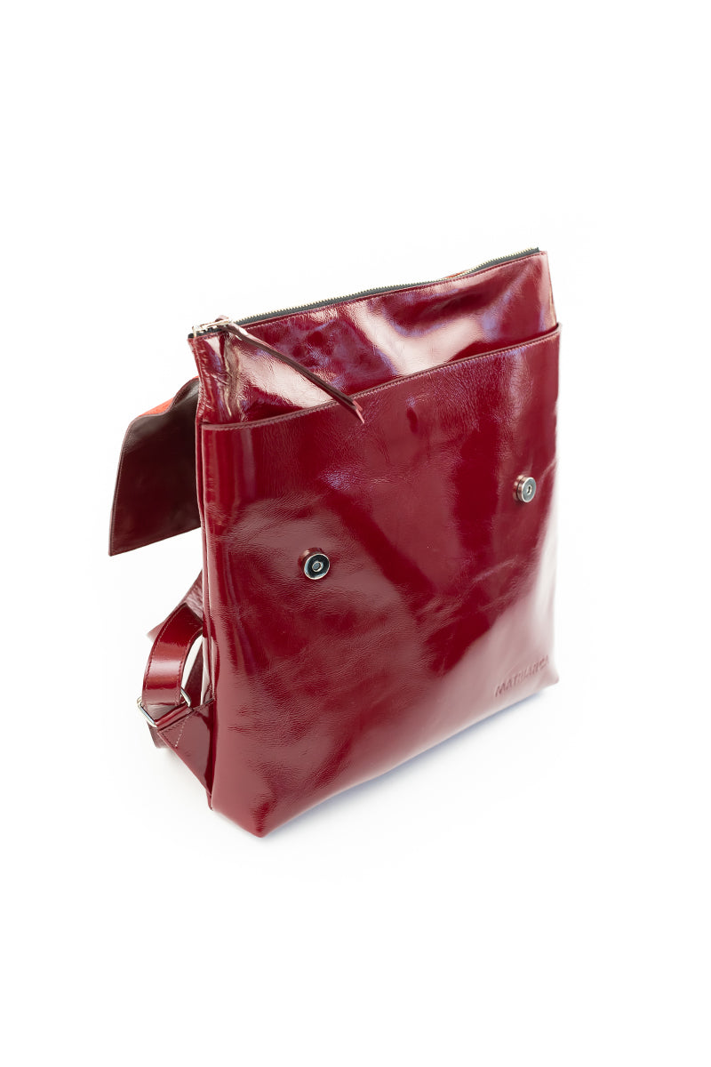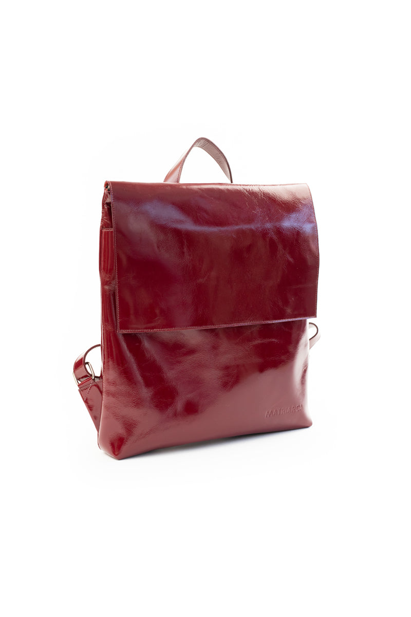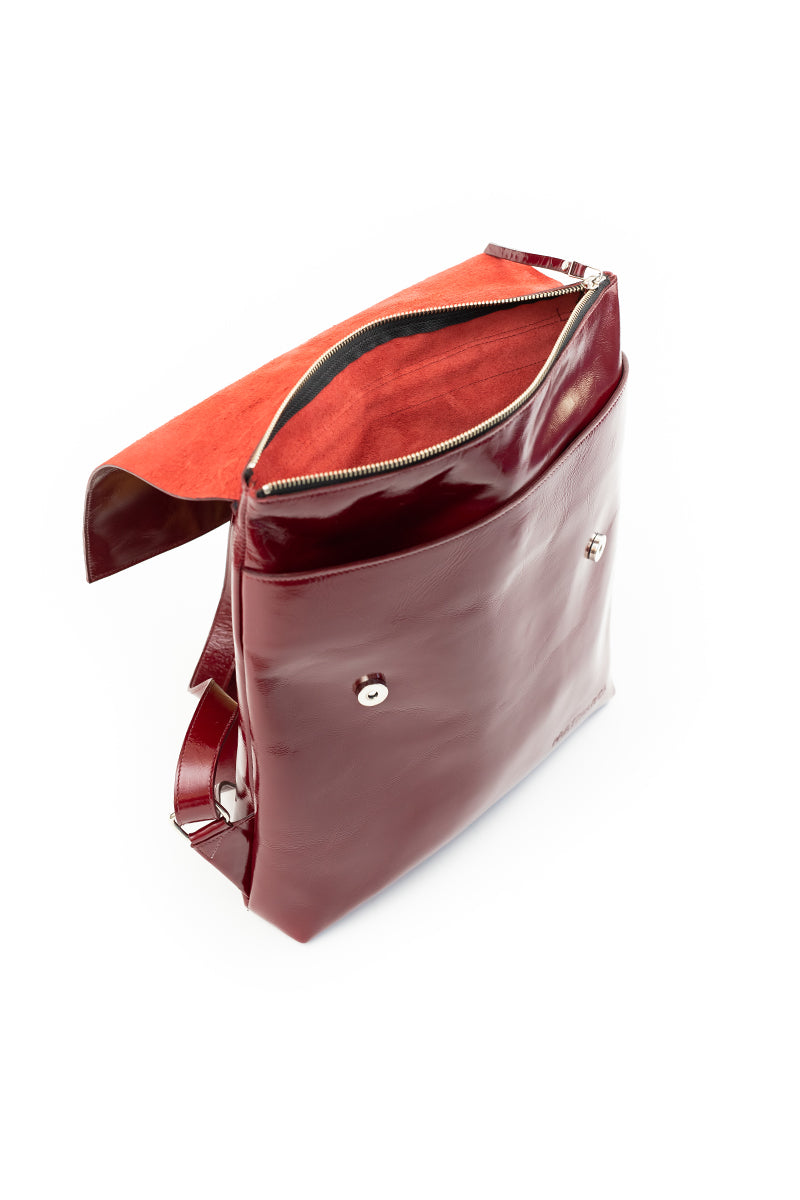 Mochila confeccionada en cuero richato granate, de líneas simples, mantiene una estética elegante y minimalista.